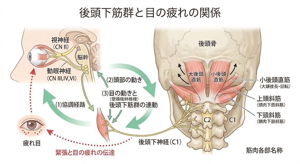 眼精疲労・目の奥の痛みは「首」が原因かもしれない|仕組みとセルフケア